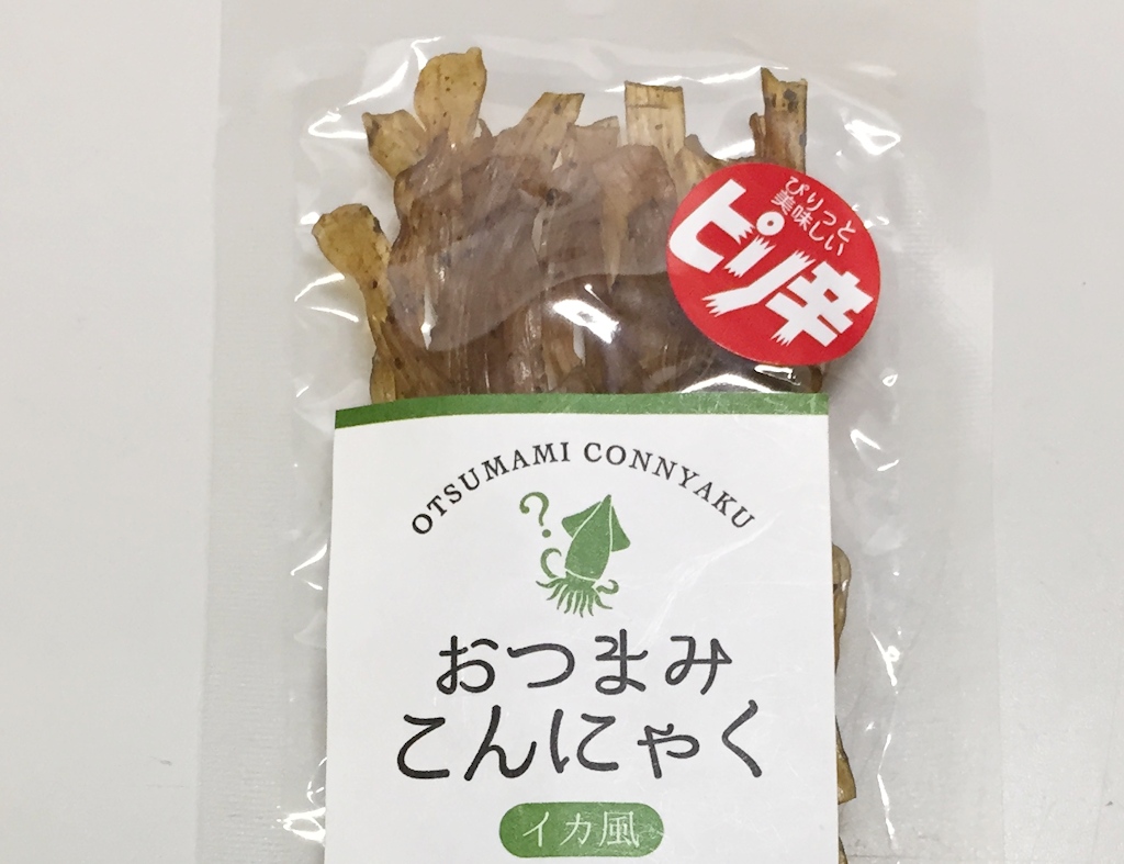 新商品『おつまみこんにゃく 貝ひも風 ・イカ風』2017.10.18更新 こんにゃくで作ったおつまみ「貝ひも風」と「イカ風」好評発売中です。 どちらも”風(ふう)”で、貝もイカも入っていませんが、見た目、食感がそっくりなんです。味付けしたこんにゃくを乾燥して作ってありますが、コシがあり噛む回数も増えてお腹の中で膨らむので小腹のおともに最適です。 酒田市内のおみやげ屋さんなどで販売しておりますので、よろしくお願いします。 未分類